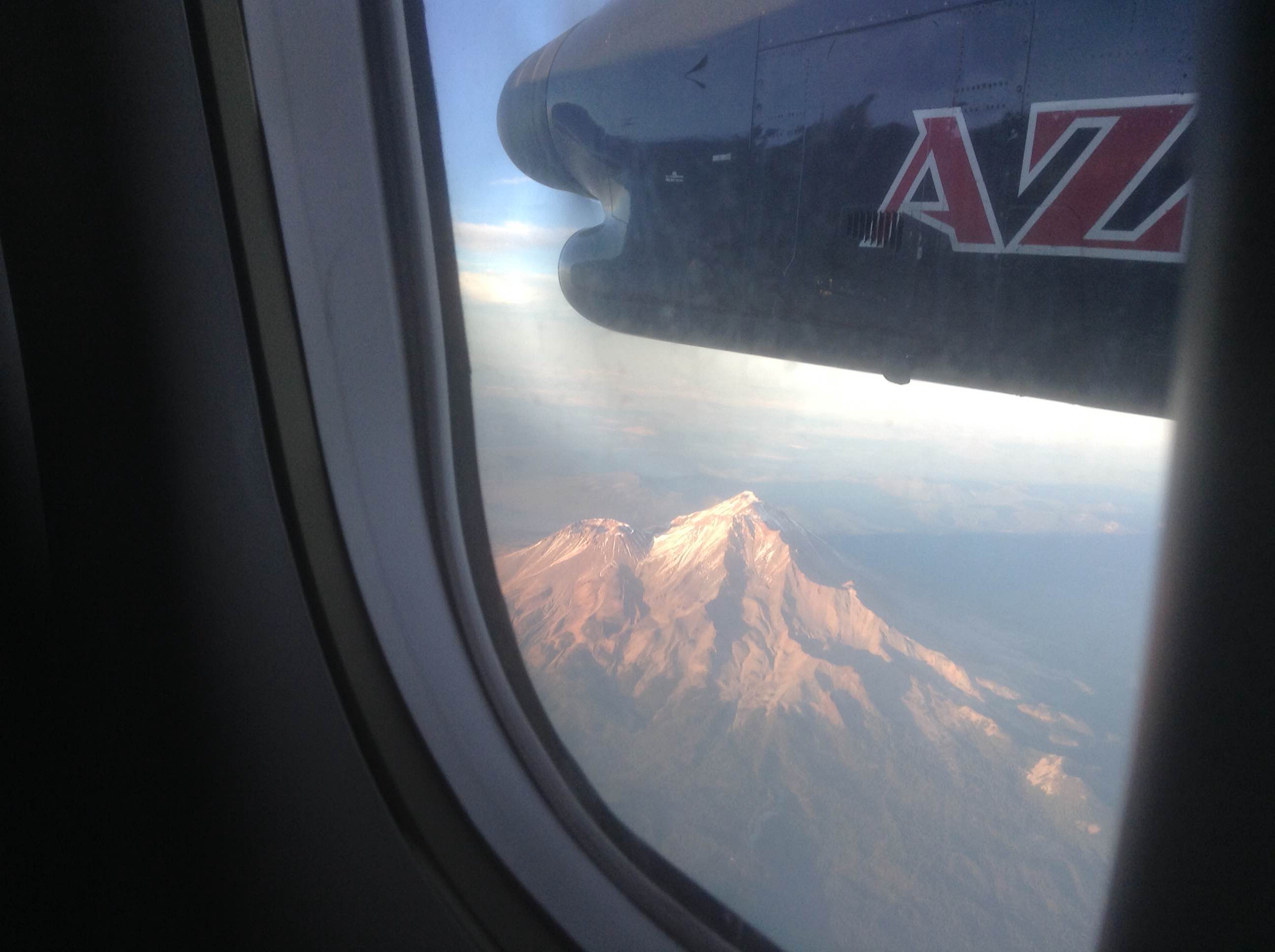Good news though! The plane was smaller, so it flew lower. That’s how we got that pretty cool picture of Mount Shasta up there.
