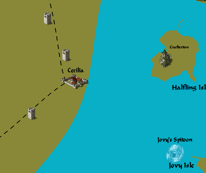 Cecilia is a fishing town and is the home to over 40,000 residents. Cecilia acts as Xoria’s main trading port with Persia and the other cities of the Magical Lands. It is the most diverse place in all of the Magical Lands due to the many different cultures that come to Cecilia to trade, but also due to the strong tourist attraction due to the city’s seaside nature.