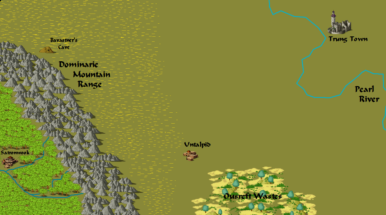 Untalpid is a small city of just under 13,000 people on the borders of the Shacklack Desert and the Ousreft Wastes. Of the 13,000, the majority are goblins with a tenth being hobgoblins and a twentieth are various other humanoids. Untalpid serves as the overland connection between the Hobgoblin Lands and India. A well-marked trade route winds through the arid climate to the south and then through a pass between the Dominarie and Himalayan mountain ranges.