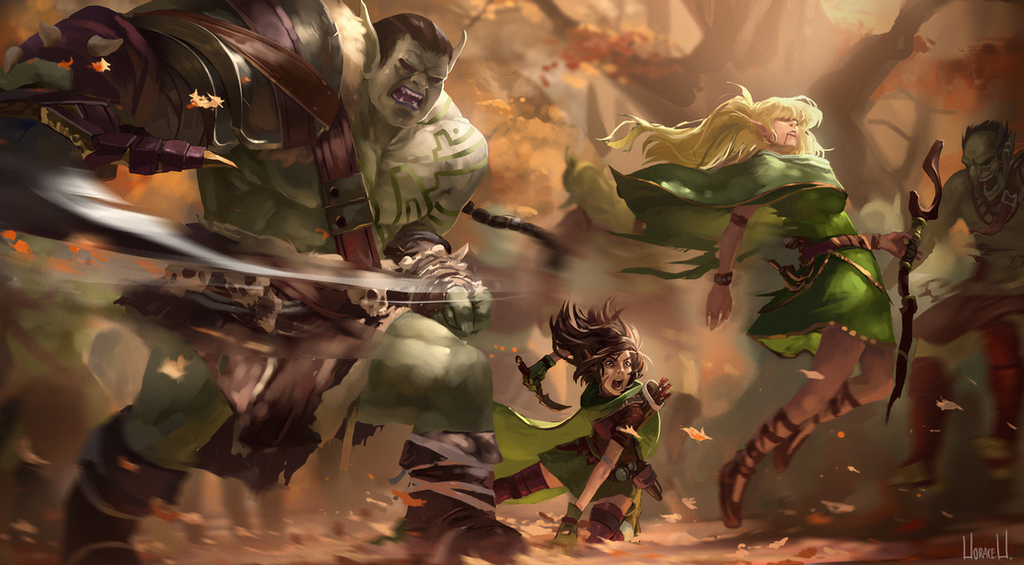 The sylvan people had retreated from public life in Cimmeria after the Dragon War. The hobgoblin attack took them off guard and penetrated deep into the heart of the forest. With their inner culture threatened, the elves rallied. They erected powerful magic wards against the goblinoids. Their safe zone erected, the elves began pushing back against Kruk-Ma-Kali’s forces. His goblin troops could not proceed further into Valor Forest, so Kruk-Ma-Kali released captive Giuran owlbears into the forest to cross the elven wards. Behind the owlbears he set fire to the forest and had his mages use wind magic to blow the blaze towards the elves. If Kruk-Ma-Kali could not have Valor Forest, he would not permit the elves to have it either.