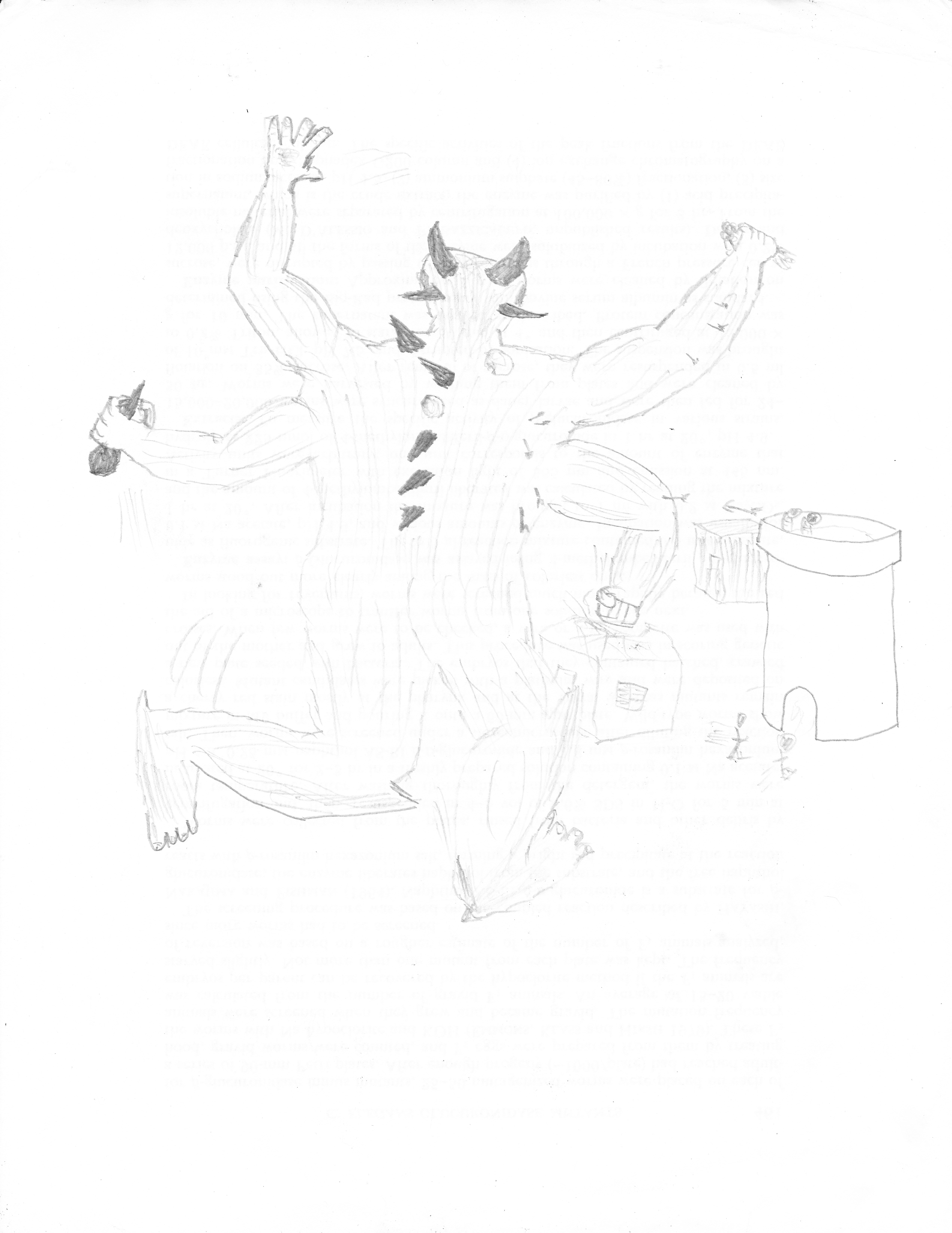 Amalius decided he would create an illusionary tower on a hill above the swamp. Hopefully, the tower would attract the building hating geriviar. The tower did attract a monster, but it wasn’t the geriviar. A grey render showed up. Preta fireballed it and it ran off.