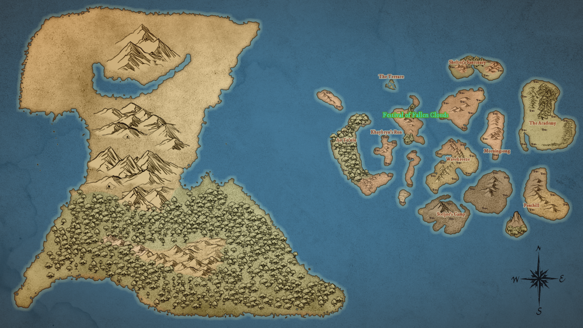 Thesi tells us about his world of Saared, an archipelago surrounded by an impenetrable wall of water shooting up into the sky. Saared is ruled by the Terrace, a floating city that monopolizes all magic within the islands. The people of Saared have lost a strong connection to the gods, so they must rely on themselves to defeat the Terrace. A rebel organization known as Cloudfall opposes the Terrace from a moving fortress ship, the Hoard. The PCs in Thesi’s world are close to defeating the Terrace which also open up the water walls around the archipelago. Soon Saared will be joining a wider world and involving themselves in an even greater conflict with the void tears that afflict the rest of the realm.