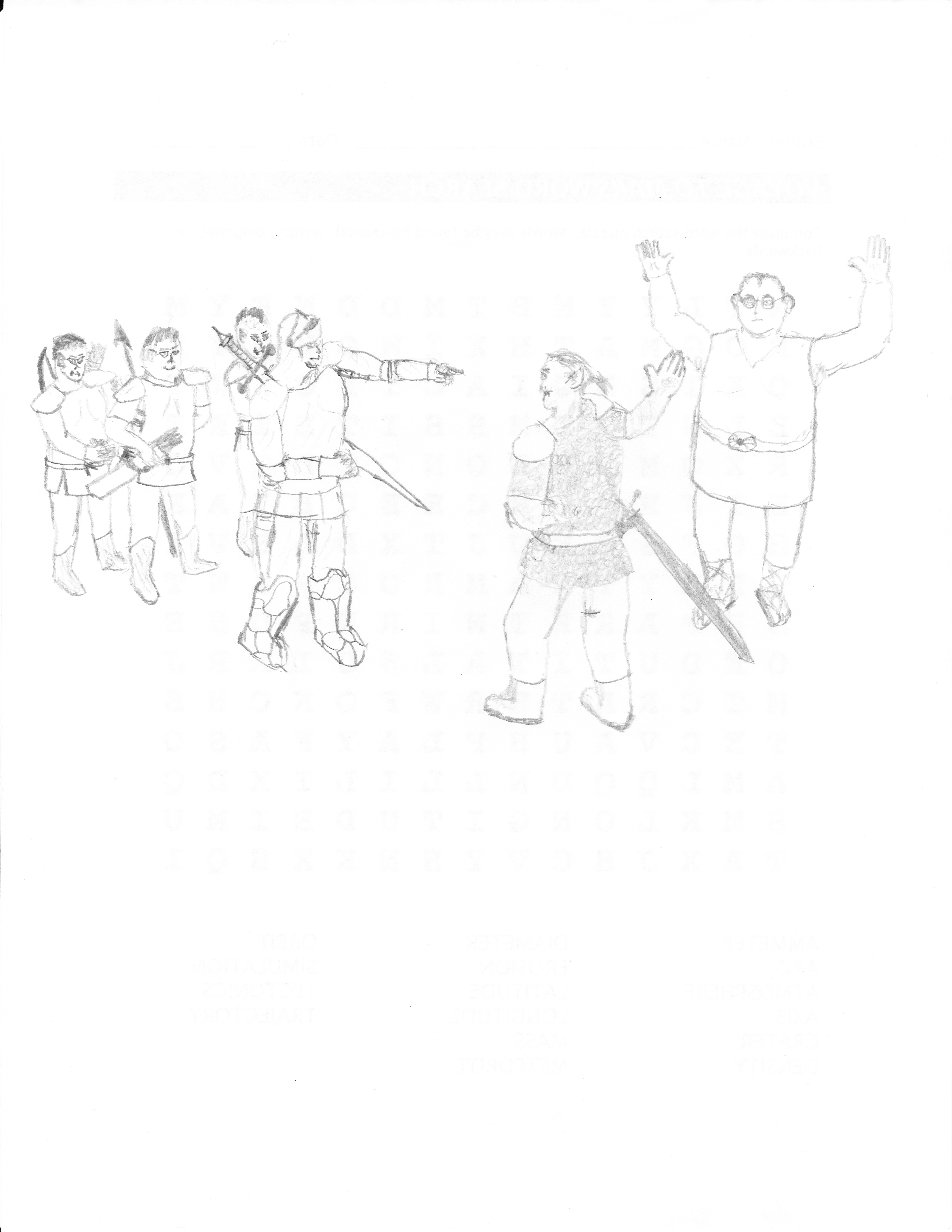 Gregor turned and saw a large human man wearing fullplate with a greatsword strapped to his back. Behind the man were two orcs and a half-orc, all wearing mithral breastplate. The half-orc carried a number of spears. One of the orcs had no weapons on him while the other had a bow and arrows easily available.