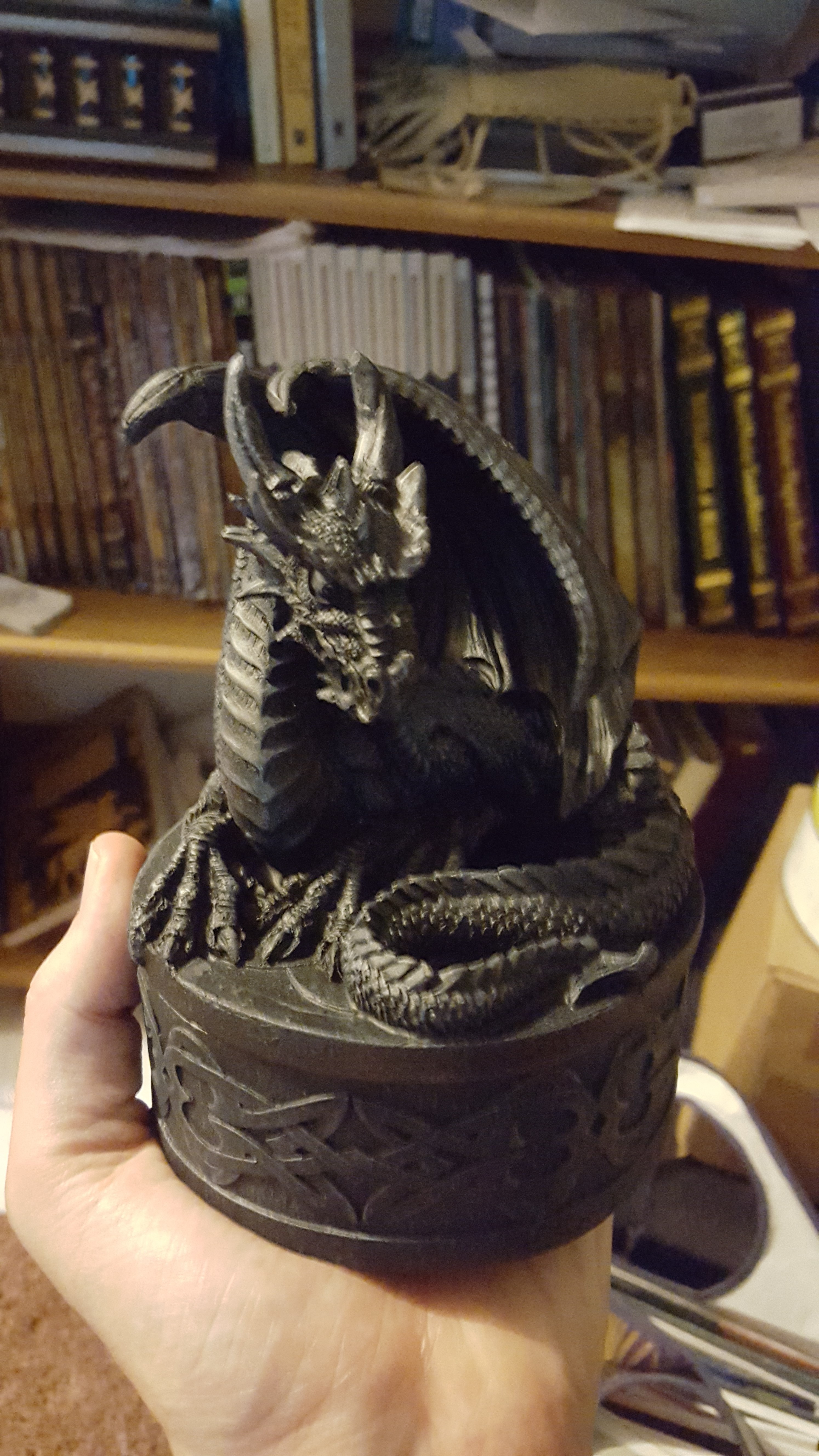 Not immediately recognizing the box, Hektor took it and examined it. As he did so, the room darkened and the dragon upon the box spoke,