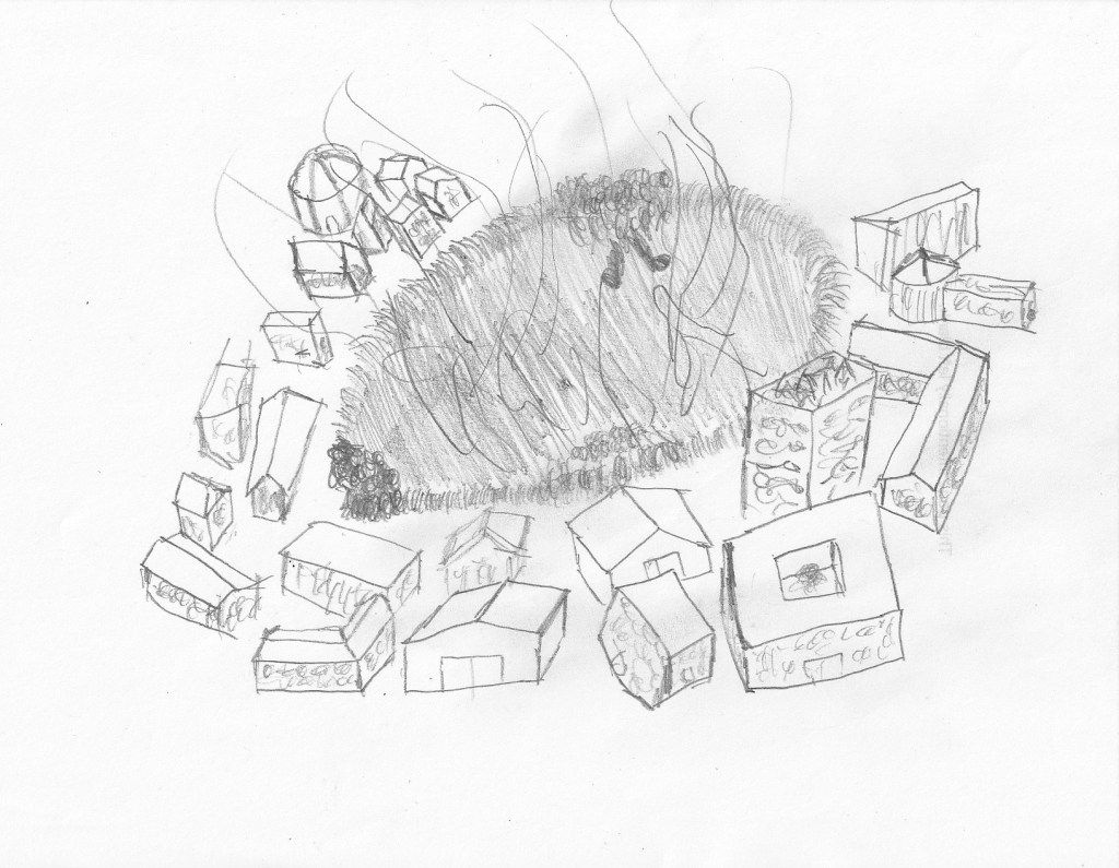 Kovan’rorshac scrapped his back against buildings and flailed at Barakah with his wings, tail, and limbs. All in vain. The black dragon met the same fate as the white, turning into an ashen cloud that floated to the Museum, alighting upon the back left corner.