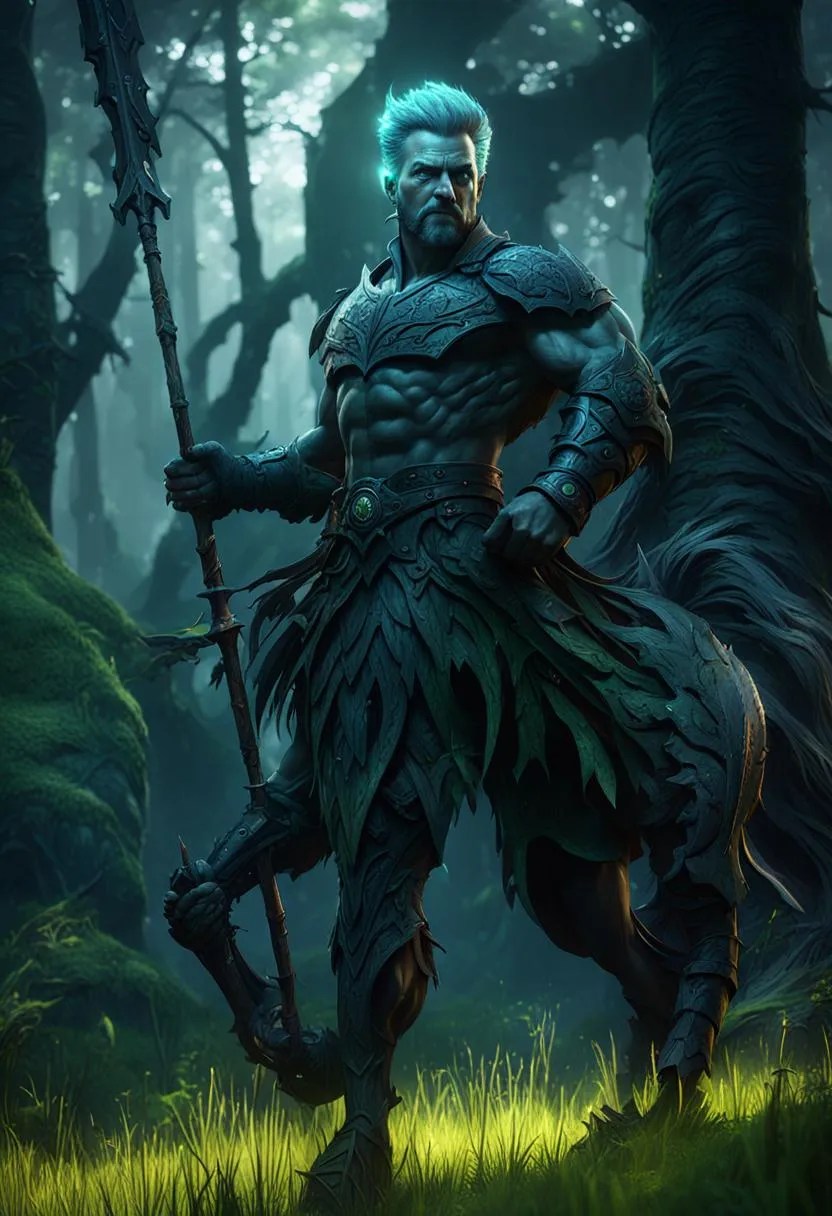 Another centaur that got messed up. The legs are wonky. Its butt got turned into a coal-powered steam engine. And its spear has a head made out of moss because its next to a tree, so the AI started thinking the end of it was a tree instead of a spear.