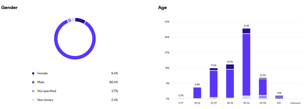 Spotify metrics show my audience as 86.4% male, 8.4% female, and the remaining as other or non-specified. No surprises there that TTRPG content is mostly male in audience. As far as age there is a bell curve of ages between 18 to 59 with 2% of my listeners at 60+. YouTube shows a similar bell curve of ages with a few more in the teenager range of 13-17.