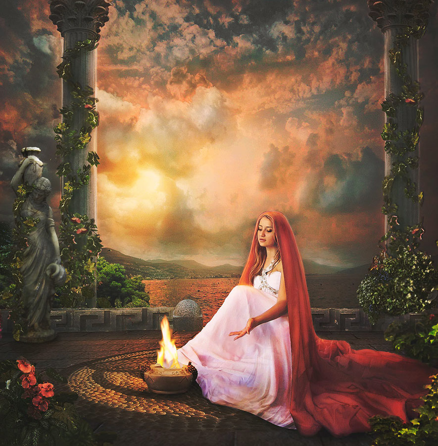 Hestia – Hestia is the youngest daughter of Cronos and Rhea. She fought in the War of the Titans, but did not take an active position in the new order. She is the goddess of the hearth and home and her sacred animal is the domesticated pig. Her role oversees and protects the daily life of all mortals. She is also one of the three virgin goddesses, sworn never to have sex and remain unmoved by Aphrodite and Cupid.
