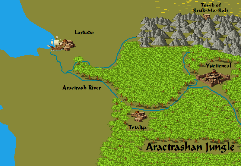 Tetalya is a jungle city with a population of about 45,000 along the Aractrash River’s exit from the Aractrashan Jungle. The city is a center for alchemy of all kinds. Magic potions and nonmagical salves are made in great quantities in Tetalya. The surrounding trees, plants, and animals have many different type of spell components that fetchers bring in to the city to be harvested for spell components. The more rare and dangerous specimens such as basilisks are processed in a cordoned area just outside of the city.