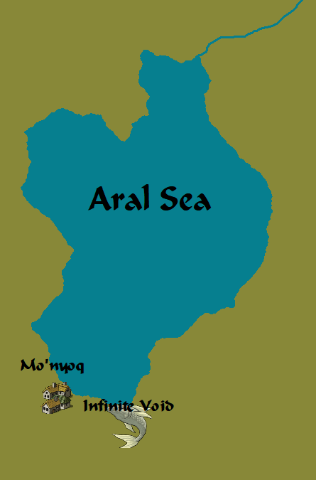 The Aral Sea is an inland salt sea on the eastern edge of Cimmeria. It marks the wild frontier between the human occupied lands to the west and the Orc Lands to the east. The Aral Sea is traditionally fished by a few minor orc tribes, one such tribe being the Infinite Void. The orcs tribes were recently disturbed by the founding of Mo’nyoq, a colony created by Danar and Amalius. Mo’nyoq was populated by many of the dispossessed from the Second Alliance War. Leadership of the developing town was given to Endi, who instructed his soldiers to start a conflict with their Infinite Void neighbors. Danar swiftly came in to stop the violence and organize a peace between the humans and the orcs, but bad blood remains.